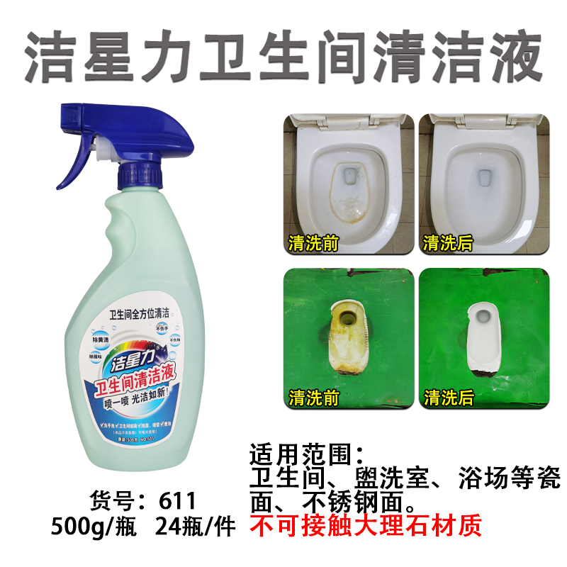 衛(wèi)生間清潔液用于衛(wèi)生間全方位清潔,日常清潔、便攜易操作,不傷釉面可每天使用。三個(gè)月內(nèi)生成污漬使用效果優(yōu)異,三個(gè)月以上的多年未清潔的各種老舊黃斑,我公司的尿堿清除粉清潔效果最佳。